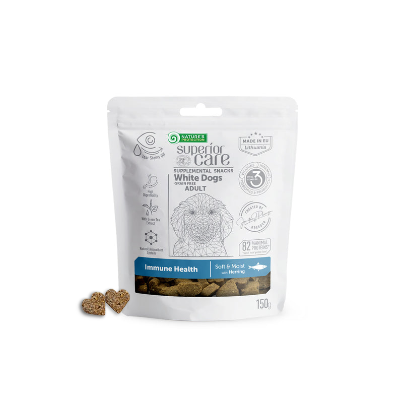白い被毛の犬種を育ててきたブリーダーが開発した成犬を対象としたスナックです。