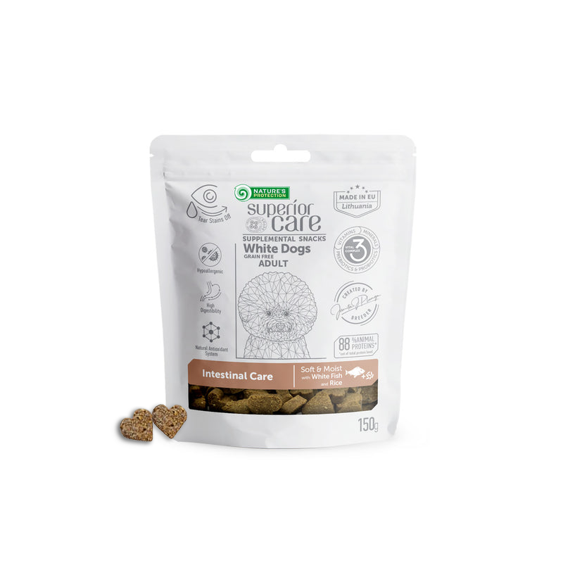 白い被毛の犬種を育ててきたブリーダーが開発した成犬を対象としたスナックです。